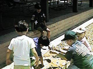 Scouts and siblings create a sandy |