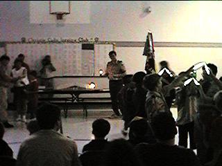 the Scouts pass to the front to light a candle